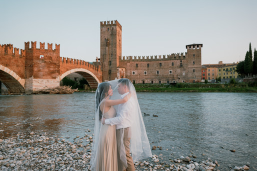 Returning to Verona, Lucas and Jolyn spent the day exploring the city that witnessed their vows. From charming piazzas to historic streets, Verona offered countless romantic corners for capturing their love story.