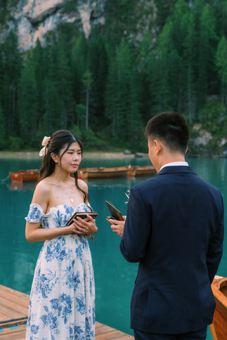 After their official ceremony, it was time to celebrate. The couple traveled to the breathtaking Lake Braies, one of the most iconic alpine lakes in Italy.
